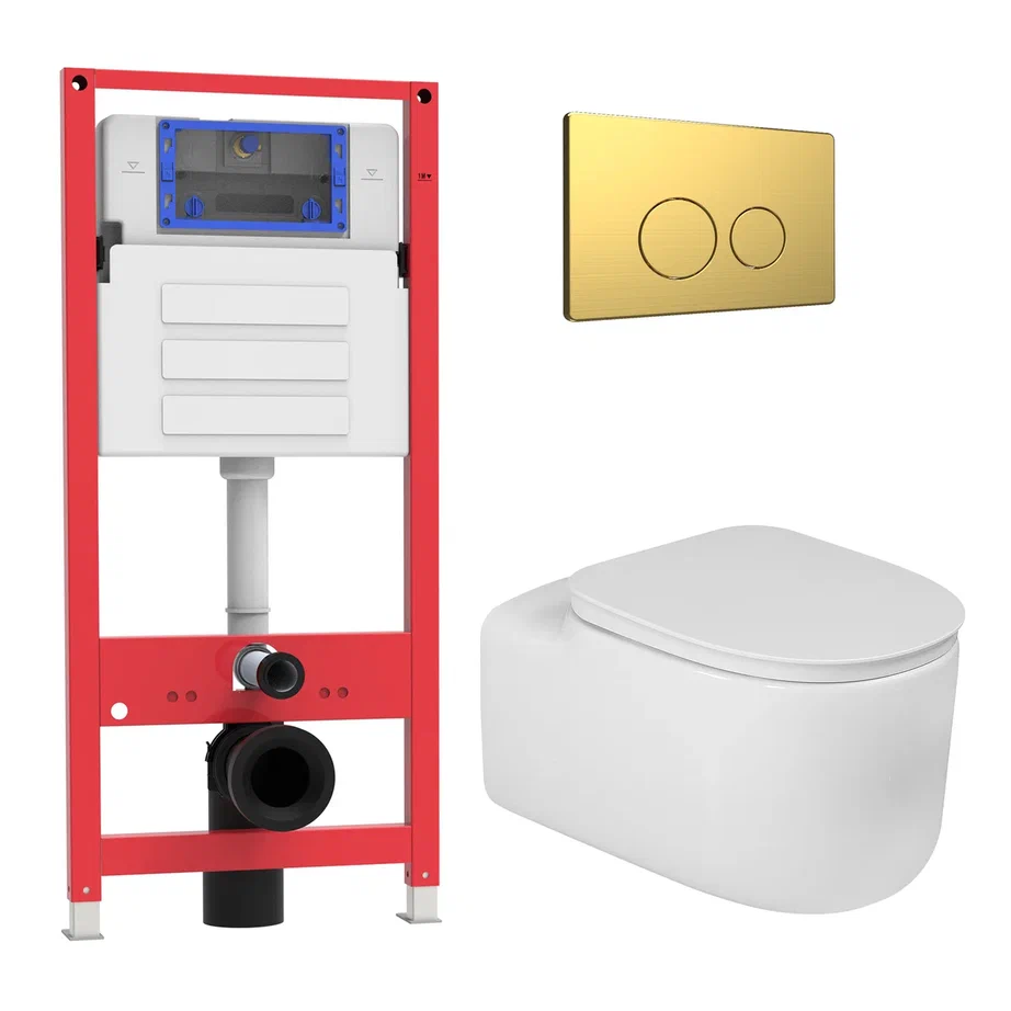 Комплект Oliveeka инсталляция OL-MQ-003 с унитазом OL-G27 и кнопкой OL-R22-BG , матовое золото
